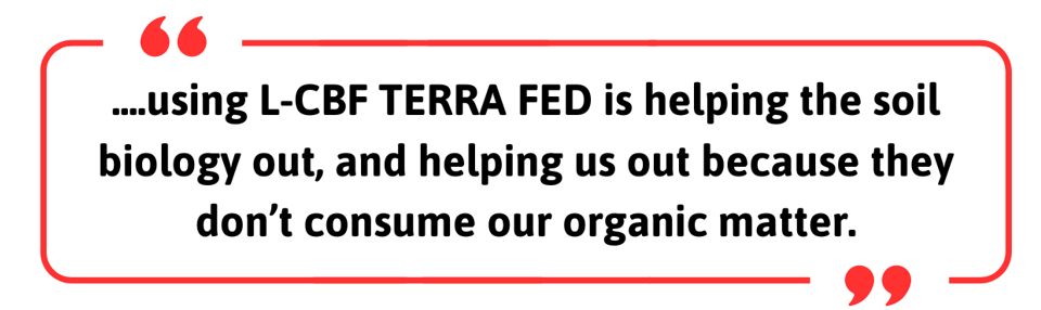 “So using L-CBF TERRA FED is helping the soil biology out, and helping us out because they don’t consume our organic matter.”